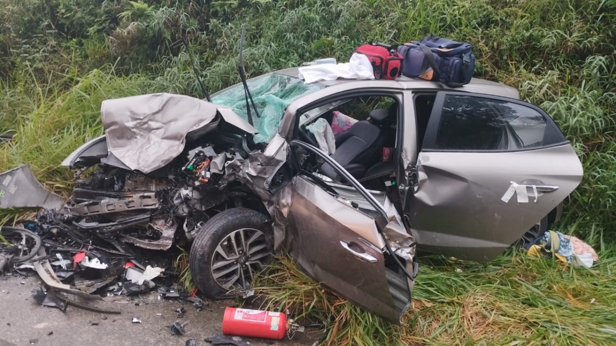 Os veículos envolvidos foram um Hyundai HB20 e um VW Saveiro.