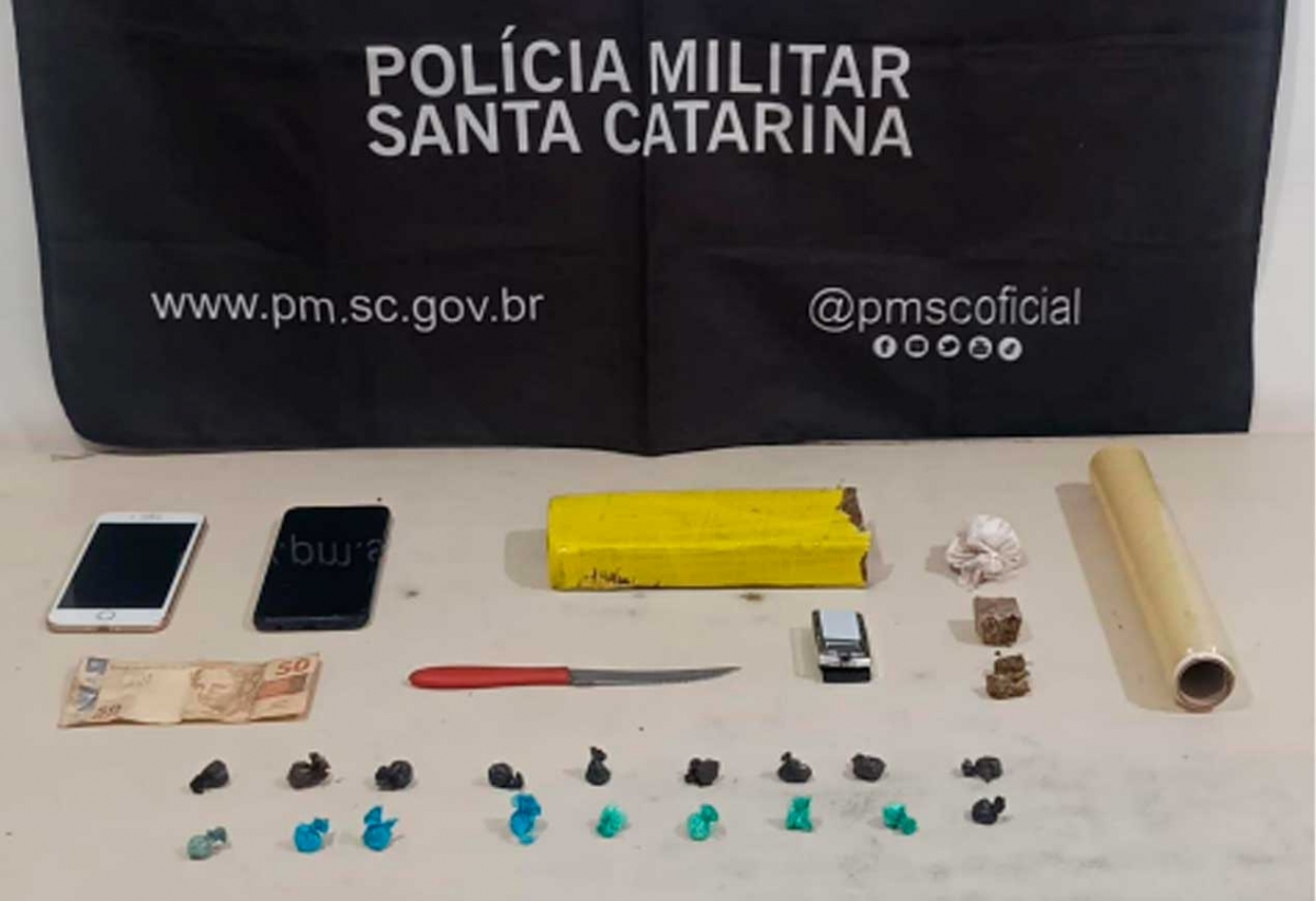 O adolescente confessou que vendia drogas há cerca de duas semanas, utilizando o celular para negociações. Com apoio do Canil de Araranguá, a PM localizou em uma área de mata próxima à casa do menor uma mochila com 454 g de maconha, 30,65 g de cocaína, uma balança de precisão, uma faca e um rolo de plástico. Dois celulares também foram apreendidos. O jovem foi encaminhado à Central de Plantão Policial em Araranguá.