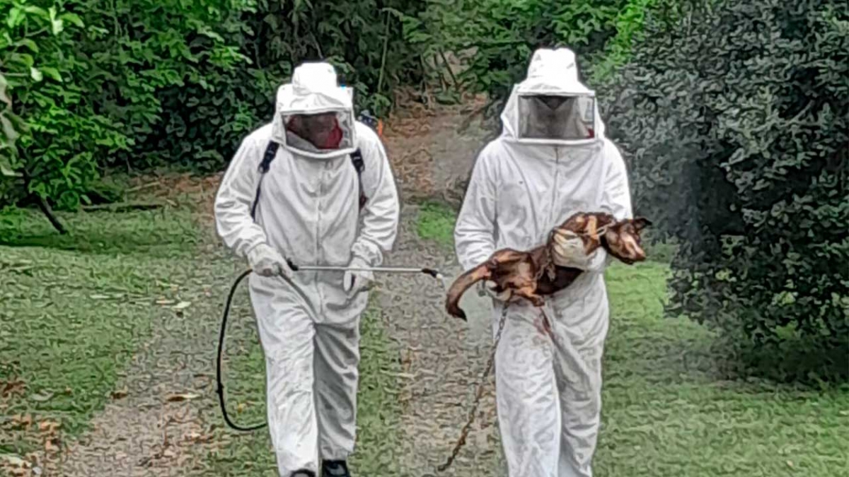 Após retirada dos animais e orientação aos moradores, foi iniciado o extermínio com álcool, pois oferecia risco iminente.