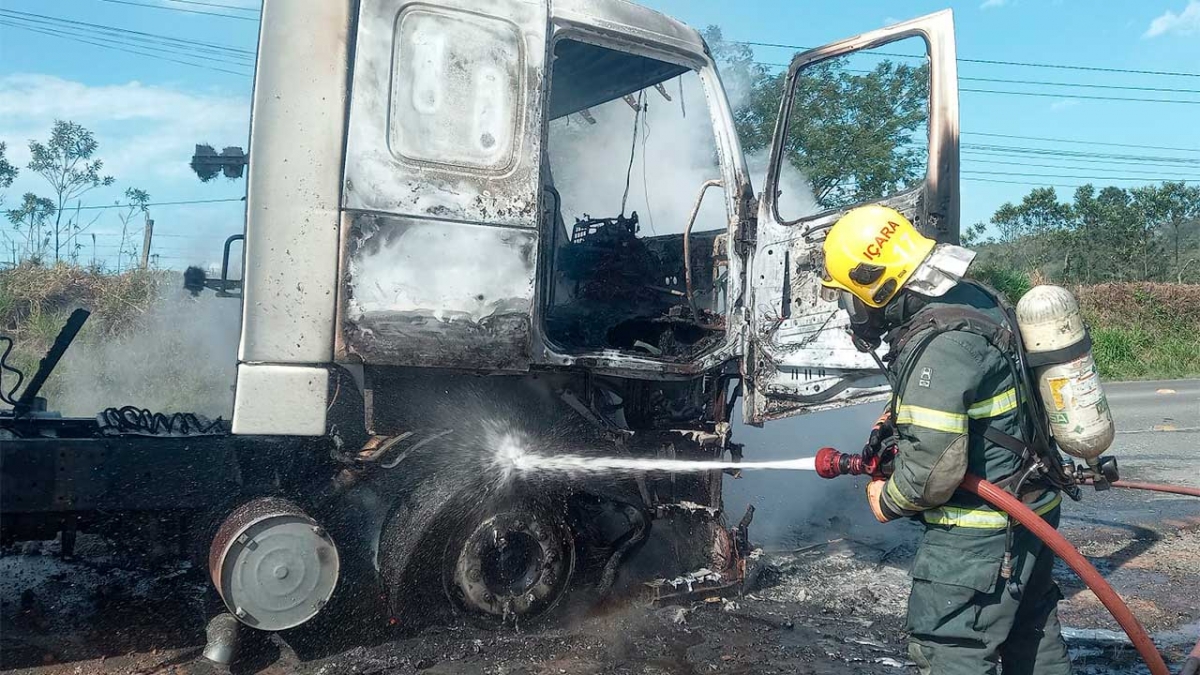 As chamas concentravam-se na cabine, em fase de desenvolvimento completo e foram extintas com uso de uma linha direta de ataque e aproximadamente 1.000 litros de água.