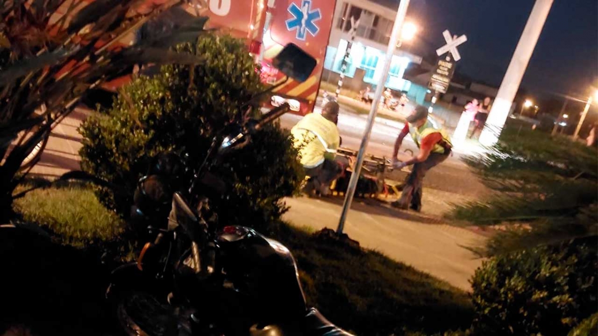 A motocicleta possuía placa de Araranguá, e o motorista do carro que a atingiu fugiu do local sem prestar socorros.