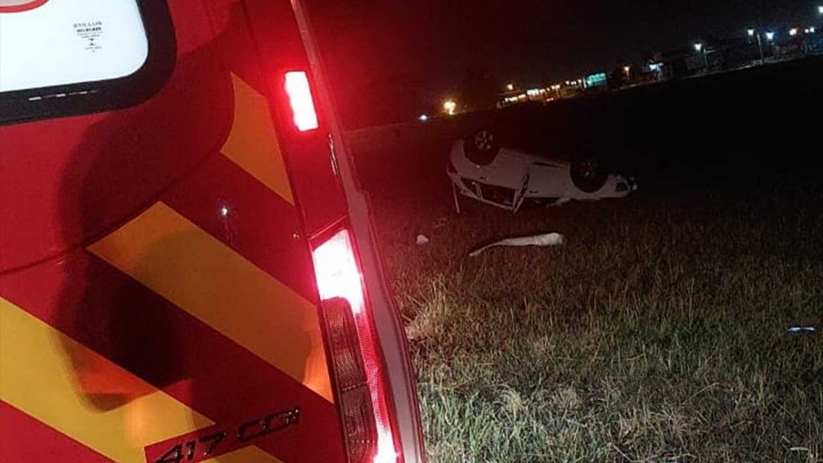De acordo com os bombeiros, duas pessoas estavam no veículo.