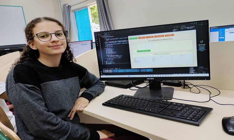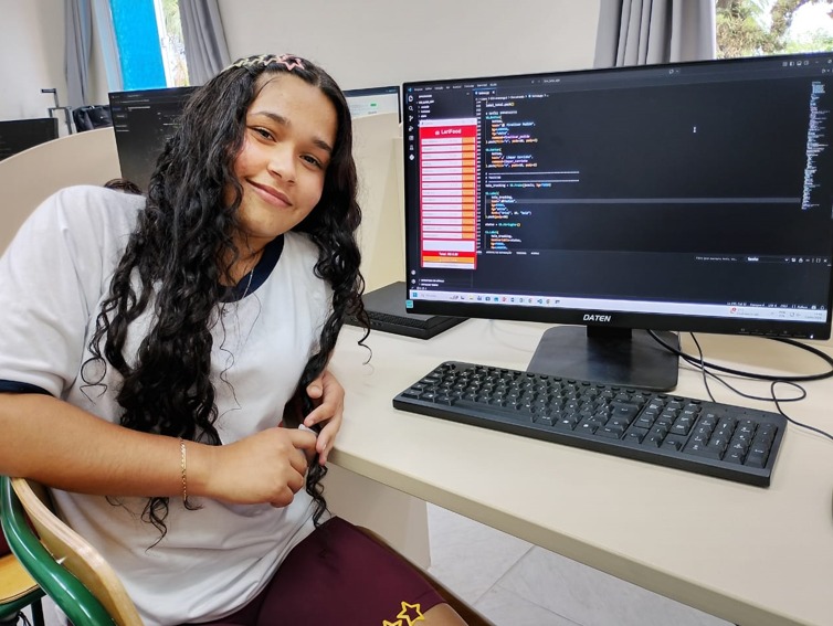 Na área de serviços, a estudante Sofia Vieira da Silva está desenvolvendo um aplicativo voltado à gestão de cafeterias, com foco na organização de pedidos, controle de estoque e atendimento ao cliente.