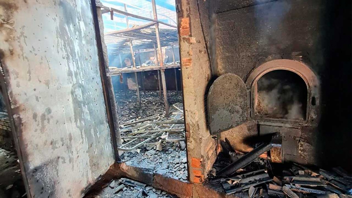 Ao chegar ao local, os bombeiros confirmaram que o incêndio estava em estágio avançado, com chamas intensas que já haviam provocado o colapso do telhado da estrutura.