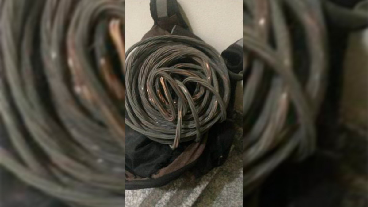 Um homem de 27 anos, de Criciúma, foi detido com 15,9 quilos de fios elétricos na manhã desta terça-feira, 26, no centro da cidade. A Polícia Militar o aprendeu com uma mochila contendo o material, enquanto descia as escadas de incêndio de uma clínica, onde ele subiu no telhado para cometer o crime.