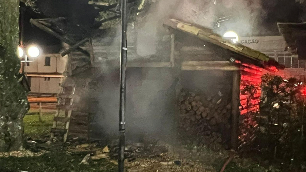 A Polícia Civil de Turvo, esclareceu a autoria do incêndio provocado por volta das 23 horas, do dia 18 do corrente mês, em uma casa de madeira utilizada pelo município para eventos natalinos.