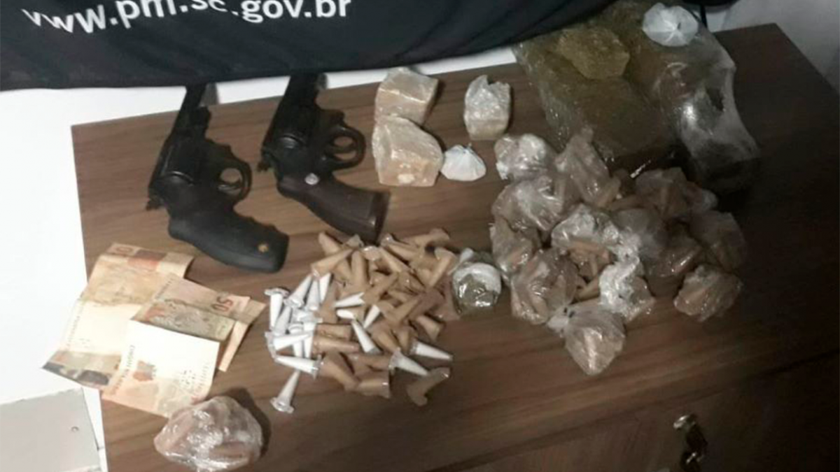 Durante as buscas os policiais militares localizaram do lado de fora da residência, enrolada em um cobertor, uma mochila contendo 488 gramas de cocaína, 279 gramas de crack, e 01 quilo e 597 gramas de maconha, um caderno de anotações, e dois revólveres calibre 38. Diante dos fatos, foi dado voz de prisão ao homem que foi conduzido juntamente com os objetos apreendidos, até a delegacia de polícia de Sombrio onde foi autuado pelo crime.