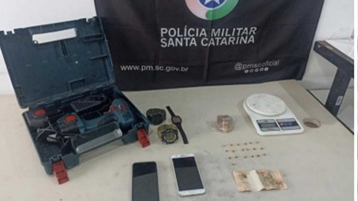 Durante a abordagem foram apreendidos dois celulares, uma balança, três relógios, uma parafusadeira e 50,00 reais em espécie, diante desse ocorrido o homem foi levado até a delegacia de Araranguá.