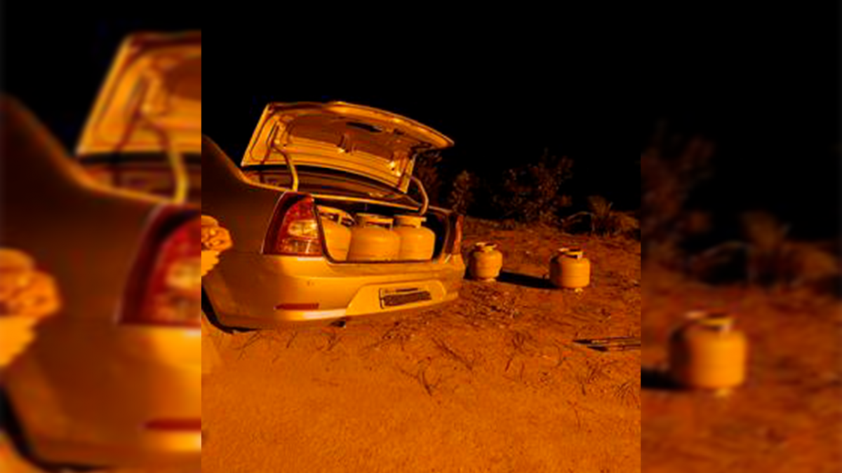 Junto do veículo a vítima encontrou 23 botijões de gás de cozinha. Somente dentro do automóvel estavam 12 botijões. Os outros 11 estavam espalhados no meio da estrada. A Polícia Militar foi acionada para atender a ocorrência e realizou rondas pelas proximidades.