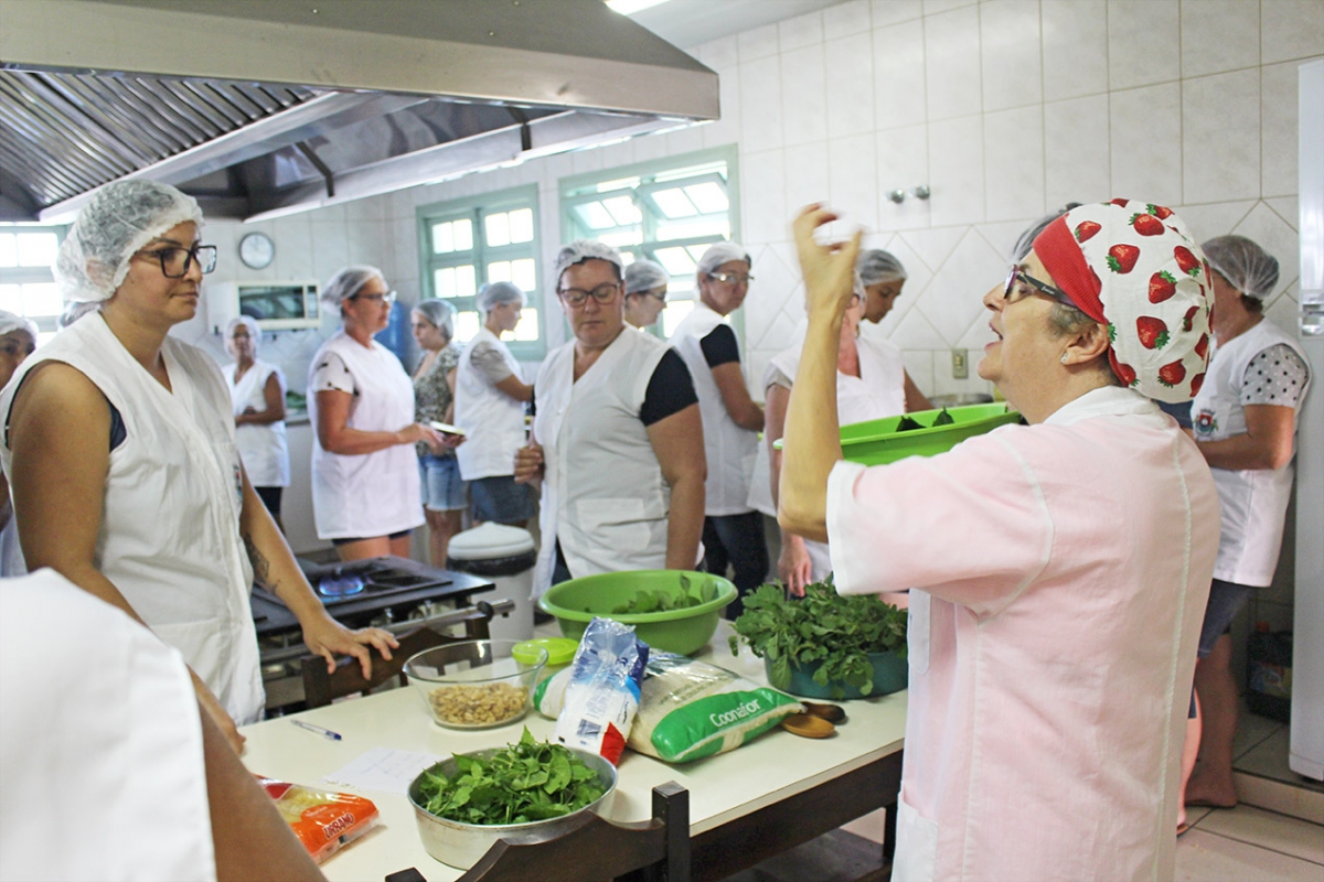 Um dia de aprendizado para 68 mulheres de Forquilhinha que atuam como agente de serviços gerais e também como diretoras nas unidades de ensino do município. Foi dia de conhecer mais sobre as Plantas Alimentícias não Convencionais que vem despertando o interesse das pessoas e que possibilita criar várias receitas saborosas e nutritivas.