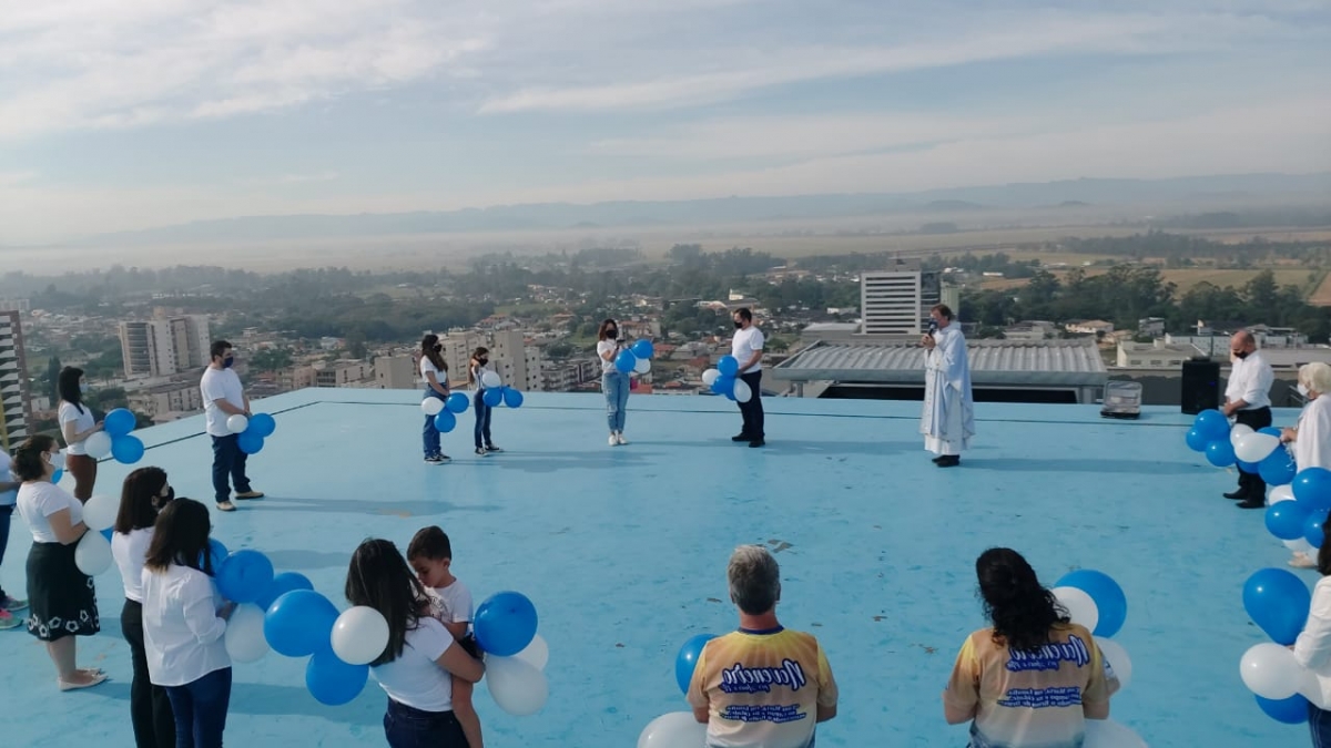Após as orações os participantes soltaram balões brancos e azuis para celebrar o dia dedicado à Nossa Senhora Mãe dos Homens.
