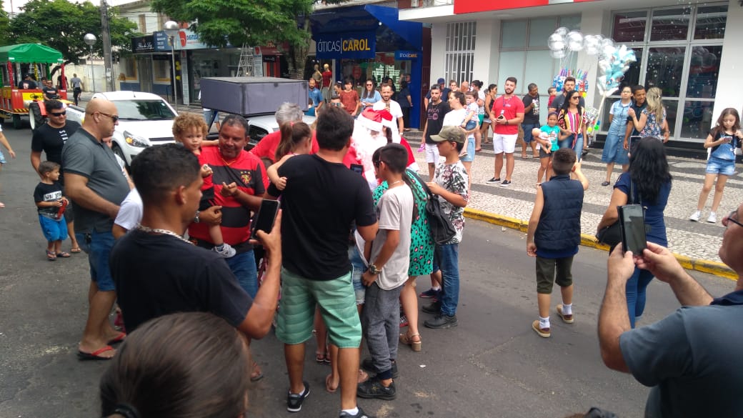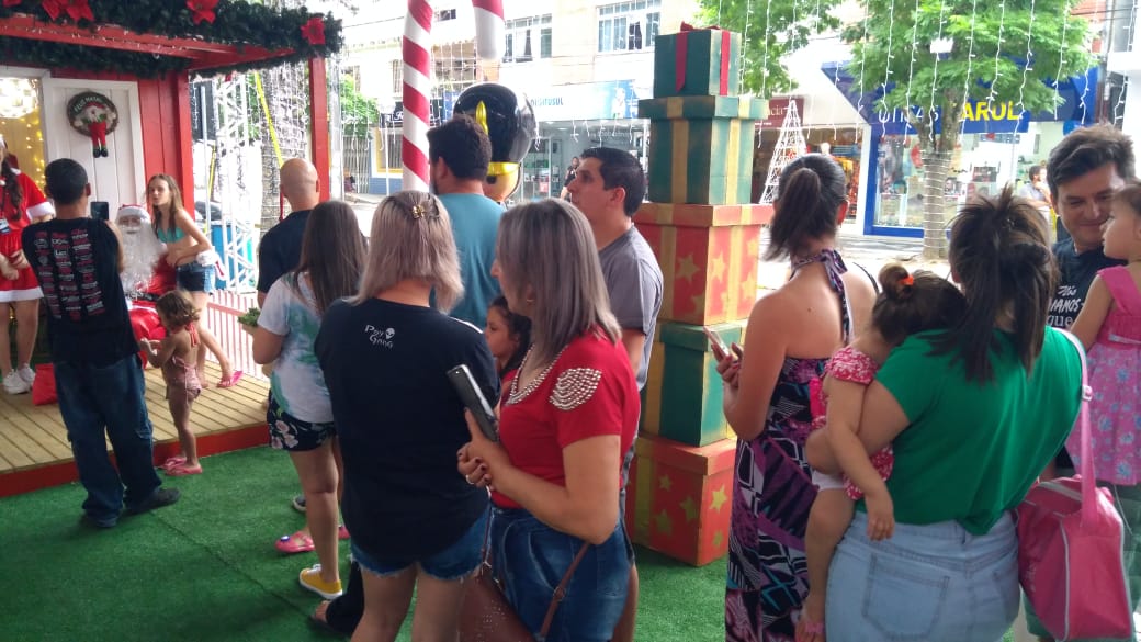 A tão aguardada chegada do Papai Noel aconteceu neste domingo (15) à tarde, quando o bom velhinho chegou à sua casinha, instalada no centro da cidade em pleno calçadão. Muitas crianças estavam à sua espera e, antes mesmo dele chegar ao palco onde acontecem os eventos do Natal Verão, uma pequena fila já havia se formado por aqueles que queriam tirar uma foto, ganhar balas e até mesmo fazer o seu pedido de Natal.