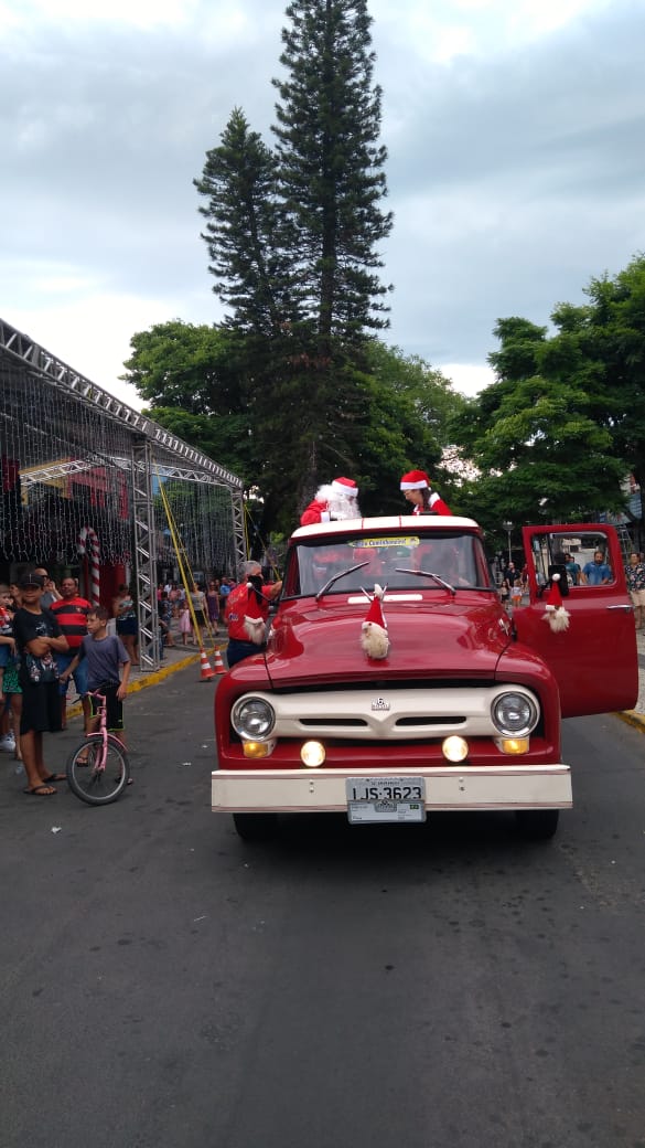 Eram quase 17h quando o veículo que trouxe o Papai Noel chegou ao centro. Antes, porém, o Papai Noel circulou pelo Combo Atacadista, local de onde saiu em direção ao calçadão. Lá ele passeou pelos corredores, acompanhado de uma banda natalina e posou para fotos, para depois seguir em uma pequena carreada escoltada pela Polícia Militar, que o deixou na Ilha do Papai Noel. Após as breves palavras do presidente da CDL, Luiz Gonzaga Pereira, da primeira-dama e secretária do Bem Estar Social, Alice Aguiar, e da oração proferida pelo diretor do Colégio Murialdo, padre Vilcionei, houve uma pequena “quebra de protocolo” e, com a presença de duas crianças no palco, todos fizeram em conjunto, a entrega da chave da cidade para o Papai Noel. A programação do Natal Verão segue até o próximo domingo, quando acontece a Parada de Natal.