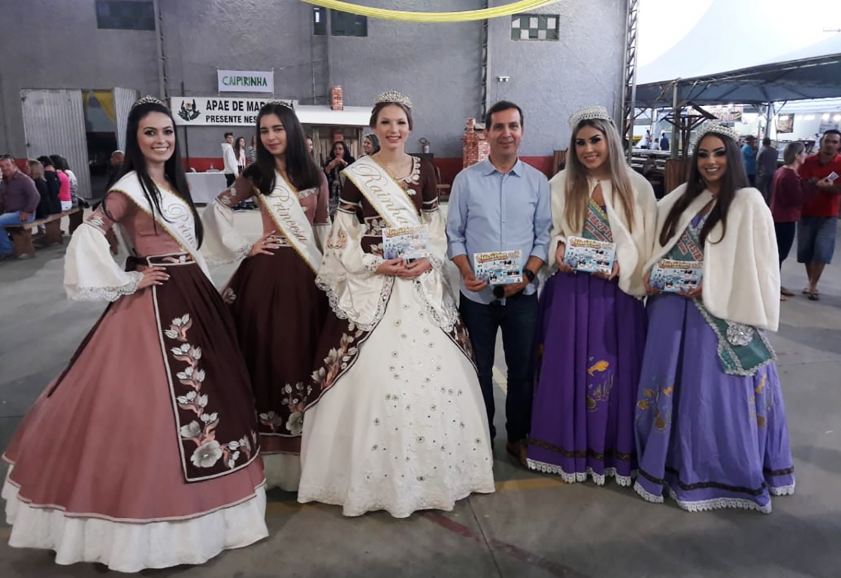 As soberanas da Festa do Peixe de Balneário Arroio do Silva estiveram divulgando o evento neste fim de semana na Festa do Colono, em Maracajá. A Rainha Juliana de Oliveira Floriano e a Princesa Júlia Maria Dorvil foram acompanhadas pela secretária de turismo Helen Becker e muito bem recepcionadas por onde passaram. Na oportunidade divulgaram a programação do evento e destacaram o convite para a Festa do Peixe que acontece nos dias 01 a 04 de agosto em Balneário Arroio do Silva.