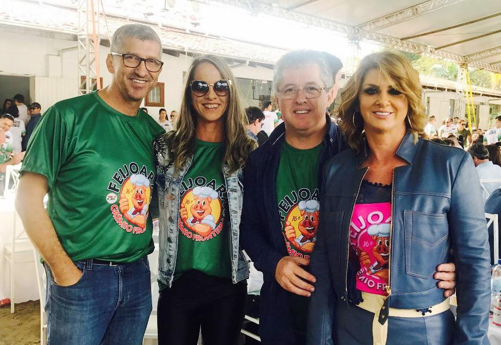 Vado e Nani Zilli, casal presidente do Grêmio Fronteira com o casal patrono do baile de debutantes Luci e Tiago Zilli, prefeito de Turvo. Perfeitos anfitriões da 16º Feijoara. Parabéns!